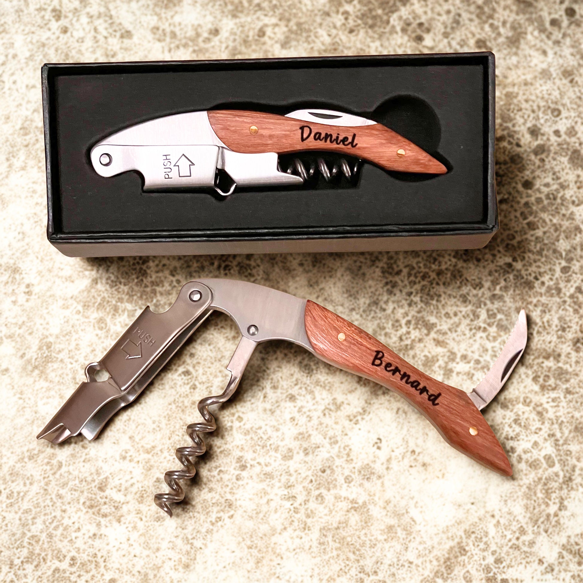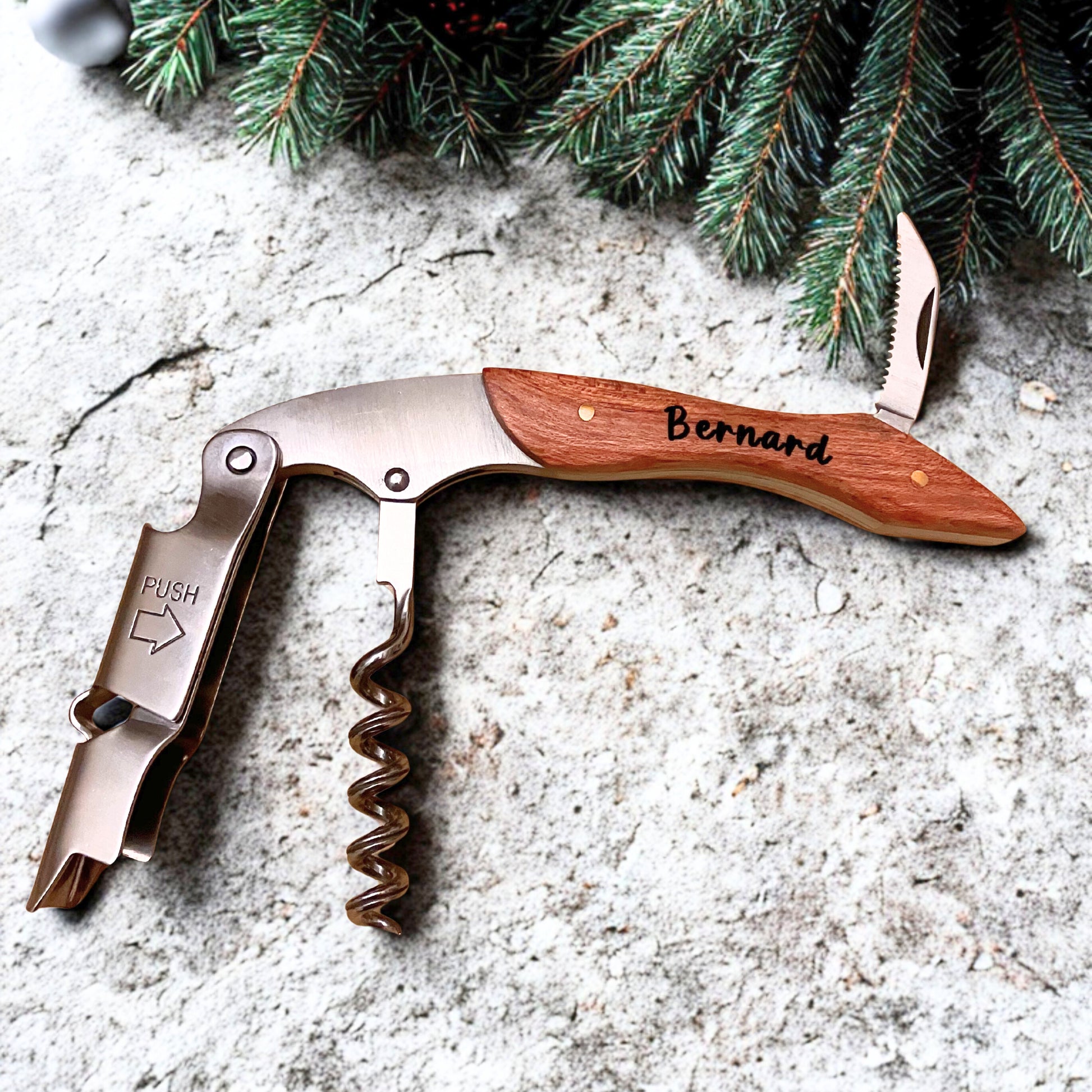 Tire-bouchon de sommelier en bois & acier – personnalisé
